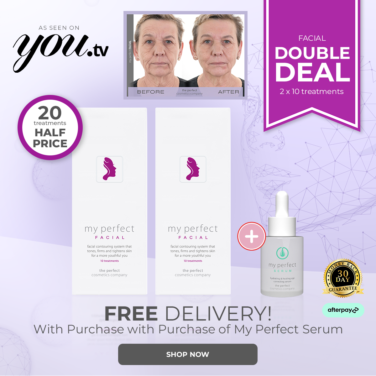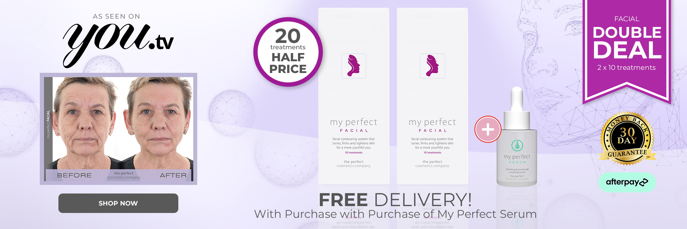 My Perfect Facial 20 TreatmentsMy Perfect Facial 20 TreatmentsMy Perfect Facial 10 Treatments x 2 This bundle doubles up on our best-selling My Perfect Facial treatments – giving you 20 professional-grade facials for the price...